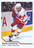Not only did Pavel put the puck in the net, he also led the team in blocked shots. His respectful tenacity on the ice earned him enough another spot on the NHL’s All Star team. He was voted by the fans to start the game along side teammates Lindstrom and Zetterberg. The Red Wings topped the Central Division West and entered into the playoffs again as the #1 seed. Round one paired them with the Nashville Predators. Detroit won that series in six games. In the next round, the Wings faced Colorado. Thew swept the Avalanche in four games. In the Western Conference finals, Detroit battled the Dallas Stars for six tough games. Pavel contributed to the series win with his first NHL hat-trick in Game 3. Detroit returned to the Stanley Cup finals for the first time since Pavel’s rookie season. Their opponent, the Pittsbught Penguins, had the most young talent in the NHL. The Wings, however, would not be denied. Detroit took the series in six games. Pavel set up two goals in the finale, won by a score of 3–2. The 2008–09 season was another good one for Pavel and the Wings. In April , he reached the 30-goal plateau for the third time in his career. As the season wound down, he was closing in on 100 points, which would be a first for him. He was one of just a handful of NHL’s with a plus/minus of better than 30. Pavel, the unknown kid from Sverdlovsk once considered the longest of longshots, has proven himself in the eyes of his skeptics. Those who believed in him from the beginning continue to describe what he does with adjectives such as "breathtaking" and "mesmerizing." They knew Pavel was more than a foreign import with nice moves and a head for hockey. As the rest of the hockey world has since found out, whenever he has the puck on his stick the Wings are a threat to score. Pavel has become a big-time player, even if he was a small-time prospect. PAVEL THE PLAYER |