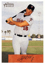 Not long after, Justin was forced to choose between his two favorite sports. While it was a painful decision, it was clearly the right one. A member of Canada's Junior World Team, Justin was named the New Westminster High School Athlete of the Year in 1999. By then, he was viewed by most scouts as his country's top hitter and catcher. Justin declared himself eligible for the draft and was taken by the Twins in the third round, the 89th pick overall. ON THE RISE Justin began the first of his six seasons in the minors in the summer of '99. The buzz quickly built about the power hitting lefty from Canada. He started in the Rookie League Gulf Coast League, hitting a solid .302 in 53 at-bats. Justin opened the 2000 campaign there as well. After batting .402 over the season's first few months, he was promoted to the Elizabeth Rookie League, where he hit .217 with three home runs. Despite Justin's paltry numbers to finish the '00 season, he continued to move through the minor league ranks quickly. Justin suited up for three different teams in 2001, starting with the Class-A Quad City River Bandits. There, he crushed everything that came his way, hitting .356 with 12 home runs. Justin stayed hot with Fort Myers, batting .294 average and four homers. He ended the year in AA ball with New Britain. Though Justin had some trouble adjusting to the pitching at this level, there was no question he was ticketed for the big leagues. He also added to his baseball resume that summer by playing on the Canadian National team in the World Baseball Championship. Justin logged the entire 2002 campaign with New Britain and made great strides at the plate. Chosen for the All-Star Futures Game, he caught the attention of the scouts in attendance during batting practice, launching several moon shots deep into the stands. In the World Team's 5-1 victory over the U.S., he had an RBI double. |
